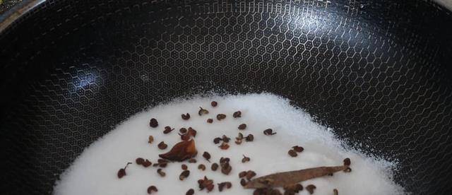 2、先從咱們準備好的食用鹽中取出50克,然後將它放在鍋中,鍋中是不用放油的,接下來咱們開始加熱,然後放入適量的花椒,八角,桂皮,將它們翻炒一下,用小火慢慢翻炒,把花椒的香味翻炒出來,鹽水雞好吃的關鍵就是炒花椒鹽,炒至食用鹽微微發黃就可以瞭,接下來咱們將它放入盤中備用。