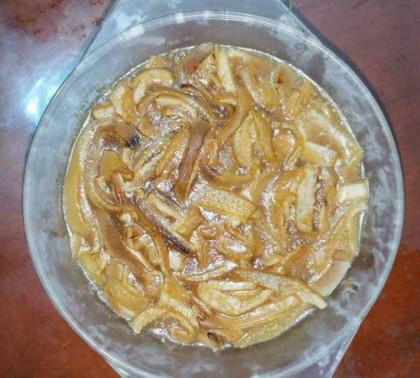 原料:豬皮、水、堿面、薑片、八角、大蔥、小茴香、桂皮、鹽、料酒、生抽、香油、醋、蒜。