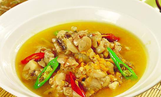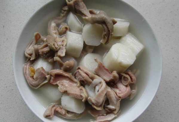 山藥豬肚湯:豬肚用鹽、醋、面粉抓洗,再煮2分鐘用刀刮去粘液切條,山藥去皮切塊,砂鍋放清水、豬肚、生薑、胡椒粉、料酒燜煮2小時左右(壓力鍋15分鐘),放山藥燜煮15分鐘,放鹽和雞精調味即可,是非常有營養的一道湯。