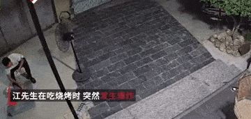 2022年7月24日,江西省景德鎮一男子在水泥地面上燒烤。在吃燒烤時,水泥地突然炸開瞭,火星四濺,場面十分驚險。所幸該男子第一時間跑開,並無大礙。