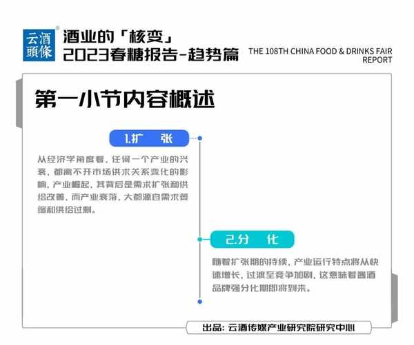 本報告以20000字篇幅,通過展覽篇、會議篇、趨勢篇三個章節,對2023春糖加以復盤和思考,從中發現酒業“核變”的巨大能量。