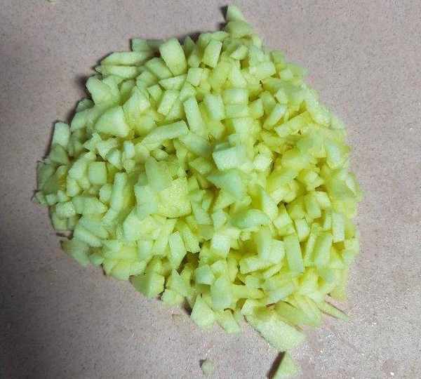 第2步、蘋果削皮切成碎丁。