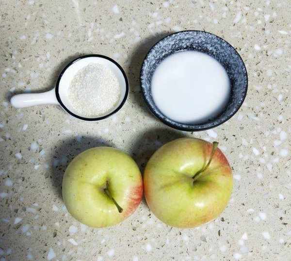 第1步、準備2個小蘋果、15g糖、5克玉米淀粉加1勺水拌成水淀粉。