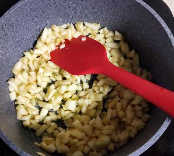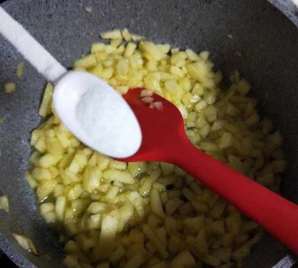 第4步、倒入蘋果丁。