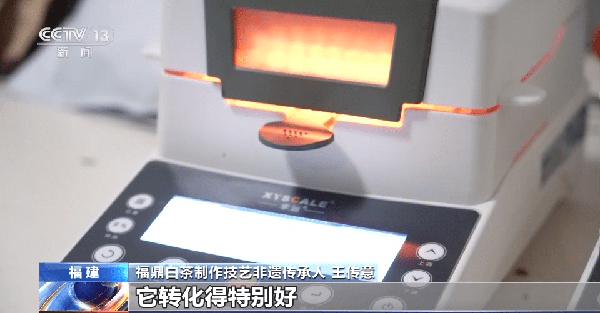 福鼎白茶制作技藝非遺傳承人 王傳意:焙得比較幹的茶,它轉化得特別好。我們現在如果長期保存的話,我們發現瞭5個點的(含水率)轉化是最好的、最理想的。