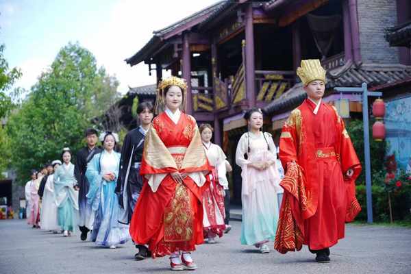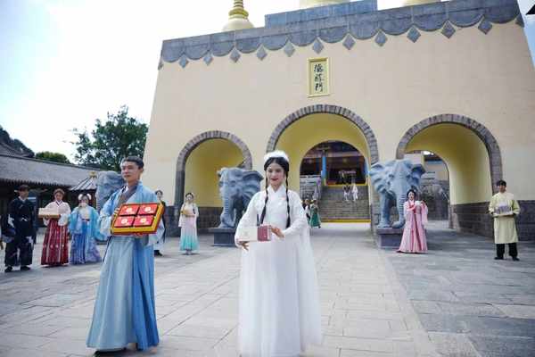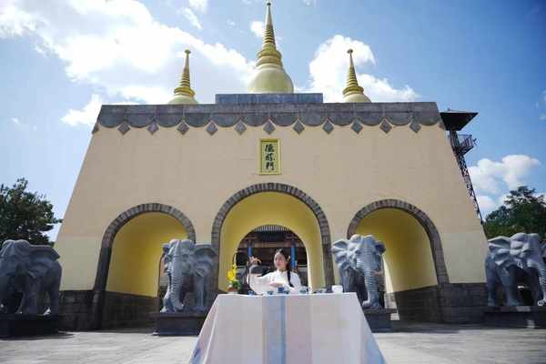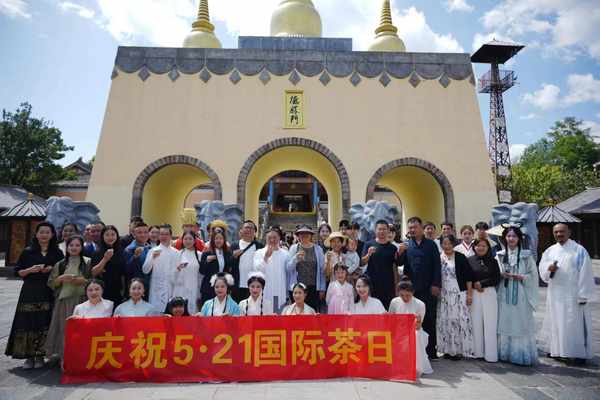 今天是5月21日國際品茶日,上午十點,由大理南詔普洱茶職業培訓學校主辦的國際品茶日活動在大理天龍八部影視城舉行。