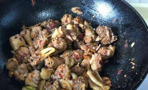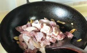 翻炒均勻。這時候鴨子會炒出一些水,炒出油。