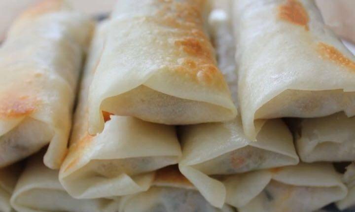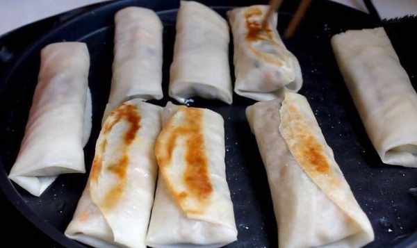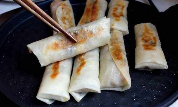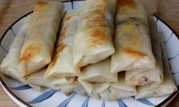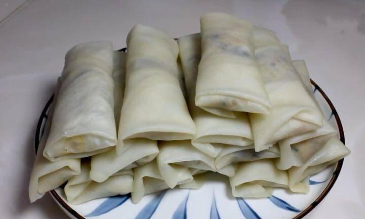 4.將食用油倒入鍋中。油熱後,倒入少量肉碎,將肉碎炒香,再加入蔥段爆香,炒香後倒入配料碎,炒約五分鐘。12分鐘,再倒入2勺生抽、1勺蠔油、適量食鹽、少量雞精,炒勻。稍微瀝幹湯汁,然後加入煮熟的糯米,攪拌均勻,再加入蔥花,再次攪拌均勻,盛出備用。5、準備好蒸餃子皮,把炒好的糯米餡放在餃子皮上,清理幹凈,用力壓緊,從一端卷起來,邊上蘸少許水封口,一個糯米卷就做好瞭準備好。電煎鍋預熱刷油,放入準備好的糯米卷,一面煎至金黃後翻面,兩面煎好後即可出鍋,上面的糯米卷酥脆外面和裡面的嫩都準備好瞭。早餐吃它比吃肉還好吃,簡單幾步就可以上桌。老人小孩都喜歡。這樣做出來的糯米卷真的很好吃。你可以一次做幾個,然後把它們冷凍在冰箱裡。早上蒸或炒都很方便。