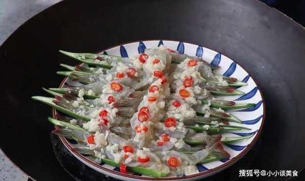3.秋葵洗凈後對半切開,去掉裡面的籽裝盤,然後蔥切少許,小米椒切圈,蒜拍碎切碎備用。4、鍋燒熱加油,熱鍋冷油下蒜末和調味小米,轉小火炒香,加入適量鹽炒勻。將切好的秋葵擺在盤子裡,把大蝦放在上面,加入炸好的蒜末備用。5、鍋內放水,開大火,將水燒開。水開後放上蒸架,把蝦放進去,蓋上鍋蓋大火蒸3分鐘。時間到瞭,打開,撒上蔥花,最後淋上香油。拿出來吃。熱點提示: