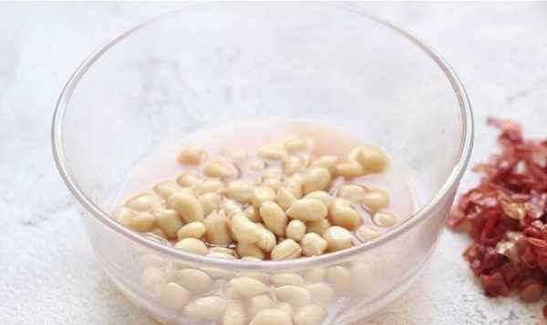 3、花生米用熱水泡去紅衣,放入鍋中,用清水煮至軟爛,撈出瀝幹水分待用。