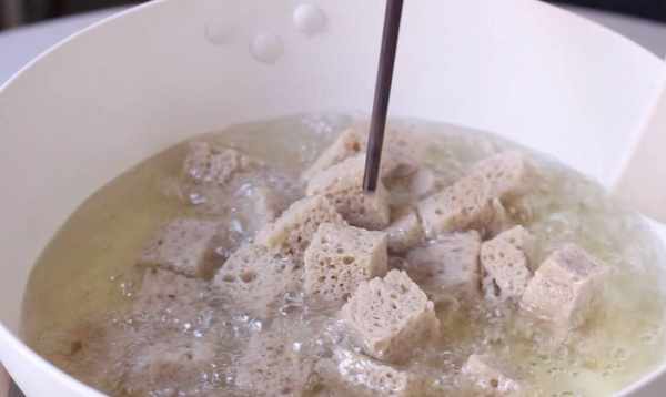 4、烤好的麩皮切成約2厘米大小的方塊或用手撕成不規則的小塊。