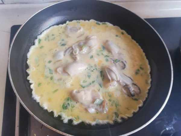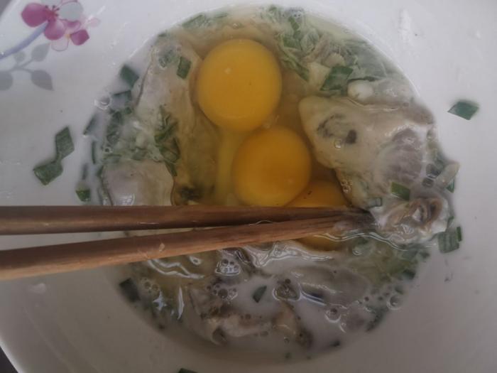 帶入3個雞蛋,雞蛋的多少隨意就好,但是也要看生蚝肉的多少來添加,一次不要做太多,够吃就行。