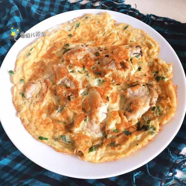 所用資料:生蚝肉少許,紅薯澱粉1勺,雞蛋3個,鹽少許,小葱少許。