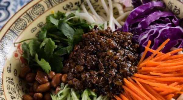 然後另起一鍋,倒入少量油,加入蔥薑蒜、紅辣椒、花椒煸炒,淋在所做好的醬汁上,香味撲鼻,最後切好配菜,搭配的食材,均勻的平鋪在面上,然後充分攪拌之後,就可以開吃啦。說到這裡,小編已經忍不住想要一吃為快瞭,誘人的炸醬,清爽的配菜,筋道的面條,這三種食材的美妙搭配,是許多在外遊子難以忘懷的美味,其實炸醬面也是一種回憶,對傢鄉,對親人的回憶。遠在異鄉的遊子,在外吃到一碗傢鄉的美食,心裡也會感慨萬千。