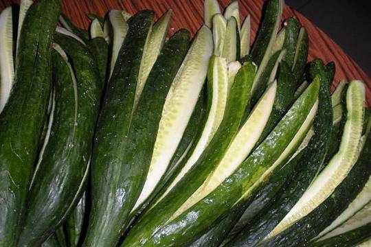 3.將切好的所有黃瓜整齊放好。