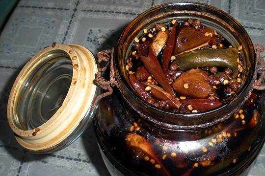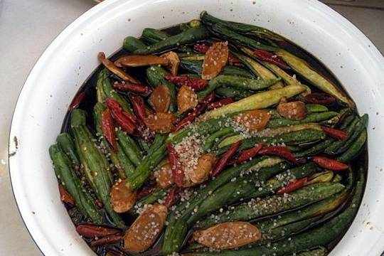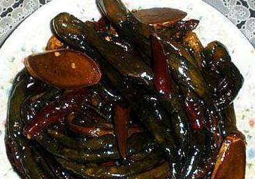 這是一道咸菜,媽媽醃制的黃瓜,特別脆,而且不是那麼的咸,還是微甜,有很濃的醬香味,還放瞭辣椒,實際不是很辣,主要是提味。不是誇口,比現在飯店裡醃制的還好吃,感興趣的朋友可以學著做做。實際不難,就是比較費時間,不過想想美食就是無比的美味瞭,再難又何妨!