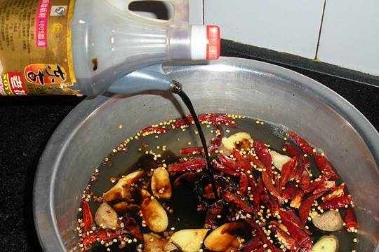 13.然後倒入醬油。熬開。