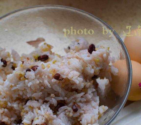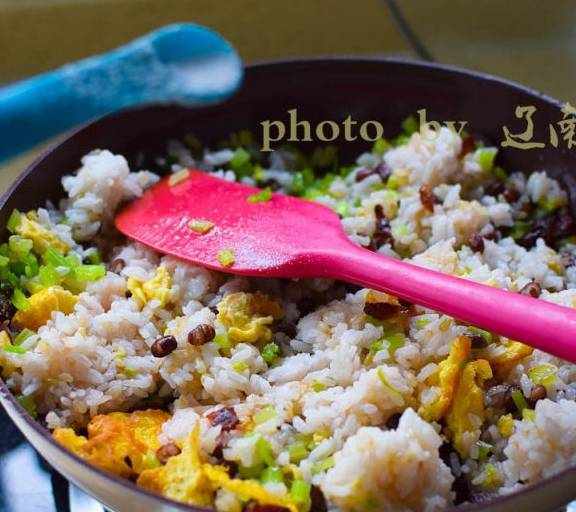 第1步、準備剩飯和雞蛋,因為要做蛋皮,雞蛋用的較多。米飯我用的紅豆糙米飯,最近蒸飯都要加些雜糧。