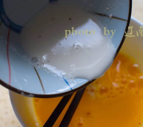 第9步、餘下的蛋液中加入稠淀粉水和鹽拌均勻。
