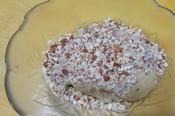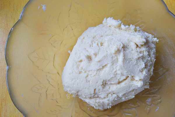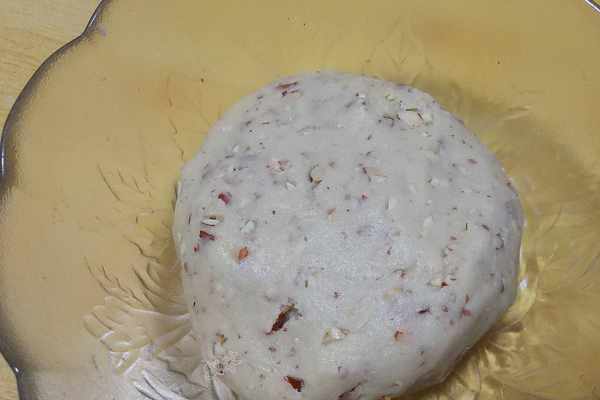 9.然後將切碎的巴旦木顆粒放入到黃油面團裡面。