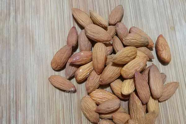 7.將鹽焗巴旦木的外殼剝掉。巴旦木也可以根據個人的喜好換成核桃仁、南瓜籽仁等幹果。