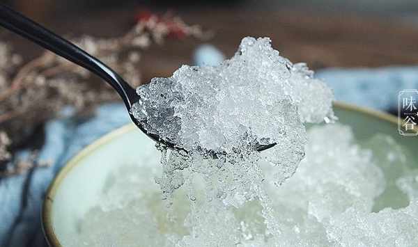 【做法】:1、4顆雪燕用清水泡發24小時,泡發好後會增加十倍這麼大都不止,泡發後是這樣的(是不是跟燕窩很像啊,這可是植物燕窩,營養完全不輸於燕窩),挑去雜質;