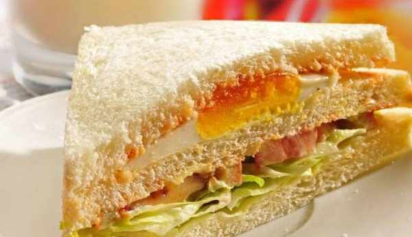 這道美食需要我們提前一天晚上做準備,吐司提前一天晚上做好。睡完一覺後,十分鐘之內這樣做:在鍋裡做一個煎蛋,然後火腿切成片之後放進鍋中煎制。把生菜,芝士片和煎蛋跟火腿片放在一起,這樣就做出瞭一道三明治。之後把牛奶和和紅茶一混合,這道早餐就完成。