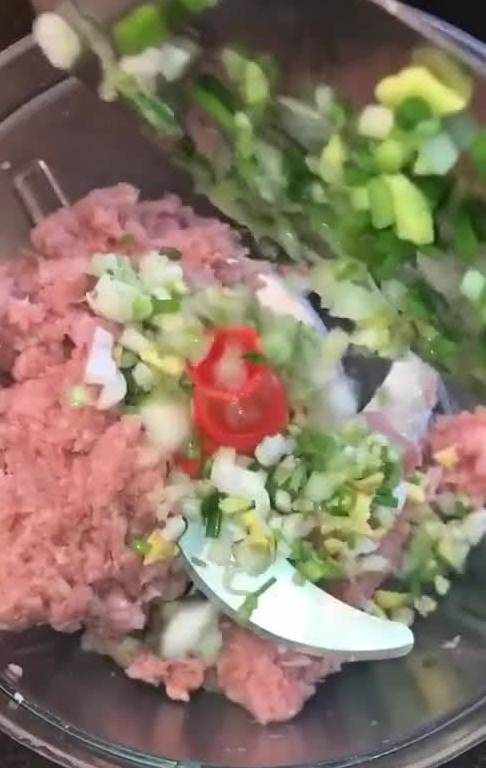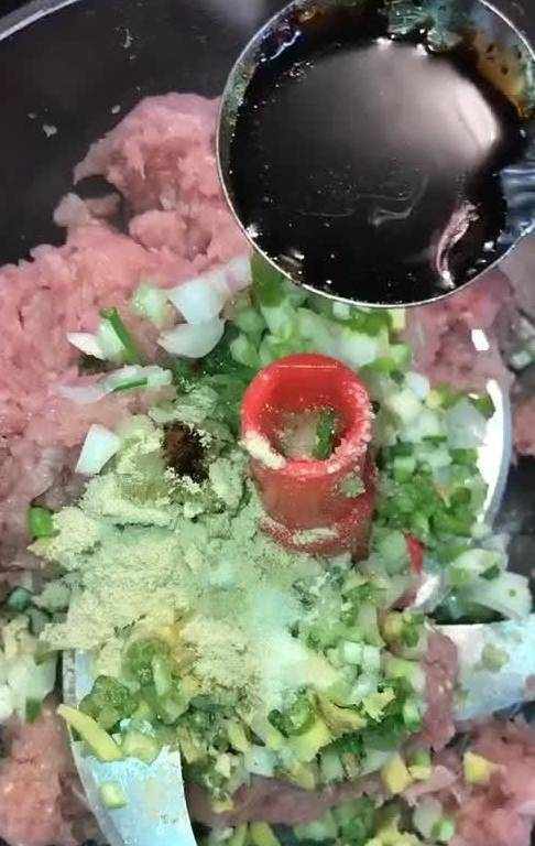 1、將裡脊肉放入絞肉機中絞碎,再放入蔥、薑,先攪拌好食材,再來調口味。