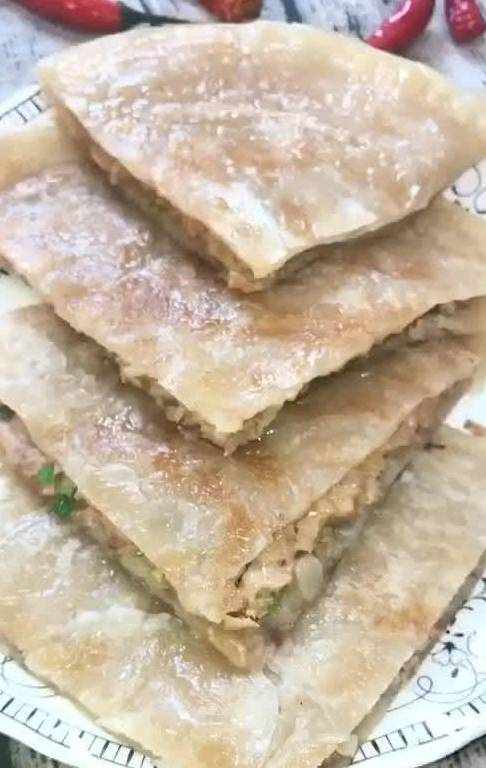 如果生活在農村就更加的方便,用哪種大柴鍋,把餅搟的大大的,可以分上好幾層,再多鋪點肉,烙熟後皮焦香酥脆,裡頭肉餡又香又嫩,早上來上一碗大米粥,簡直完美至極!