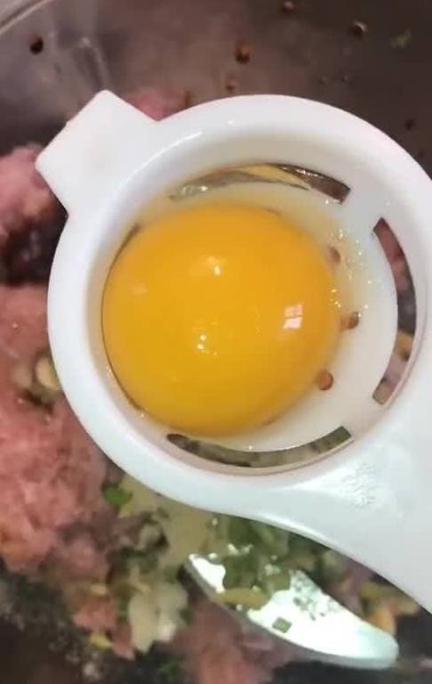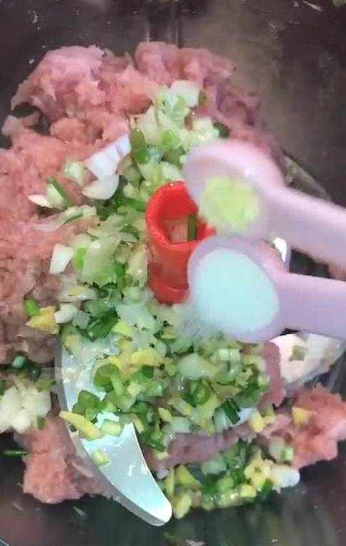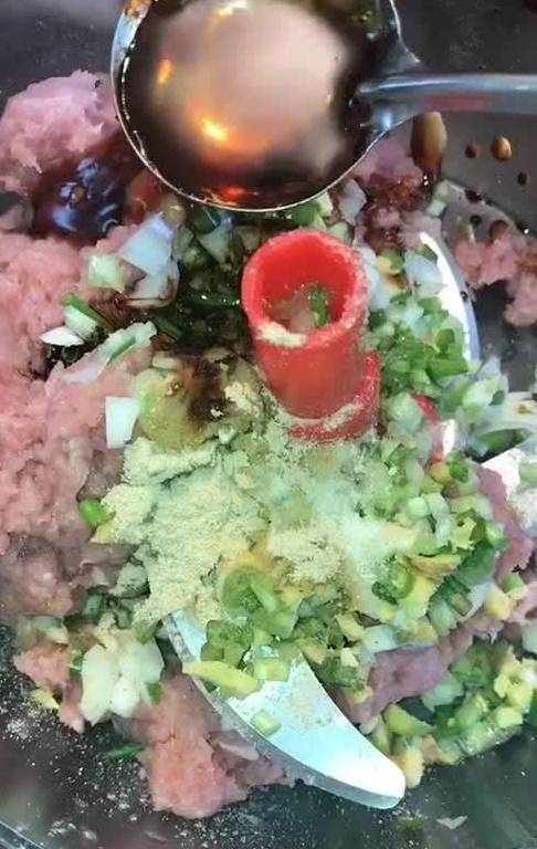 4、再來點食用油(植物油),調制肉餡一般都會放上一勺,增加它的粘性,同時可以隔絕空氣,燜出來口感比較香。