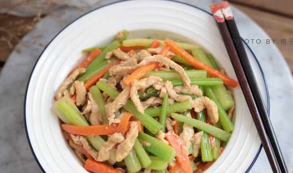 【制作過程】1、豬肉切成細絲,加入生抽、蠔油、生粉,抓勻醃制10分鐘。2、胡蘿卜和西芹同樣切成細絲備用。3、熱鍋加油,放入大蒜炒出香味。4、把肉絲放入鍋中,大火快炒至肉絲變色。5、把肉絲移至鍋邊,放入西芹和胡蘿卜絲,翻炒一下。6、將肉絲和西芹、胡蘿卜翻炒均勻。7、最後加入適量鹽調味,炒均就可以出鍋啦。
