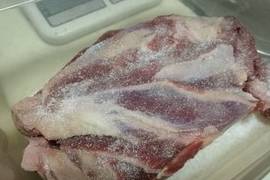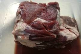 牛肉各面均勻抹上鹽,放冰箱冷藏醃一晚上。(我醃瞭兩個晚上)