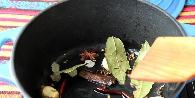 大致流程:炒香料→炒肉→加液體→加水燉煮