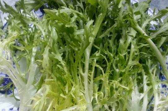 把苦菊洗凈、控水、用手撕成一條一條的,不要用刀切,會影響口感。