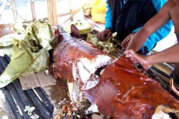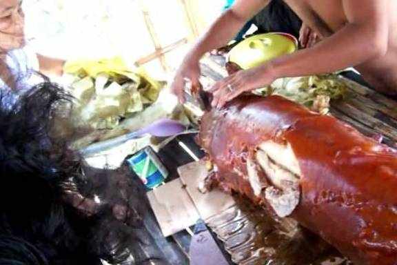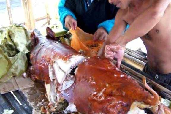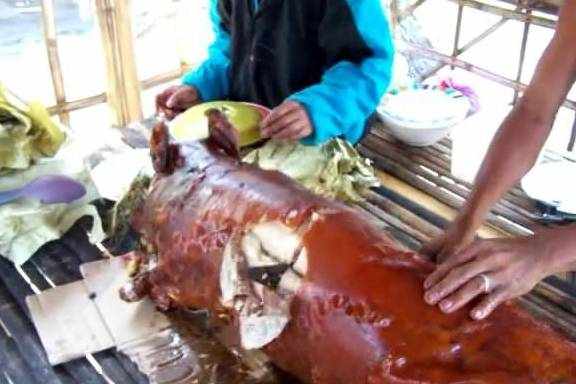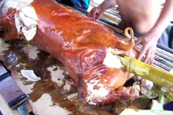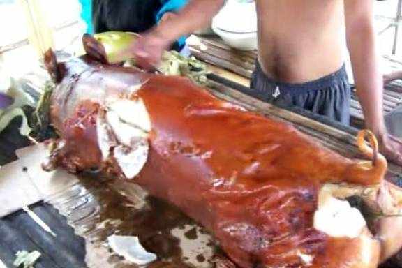 說起吃烤豬來,除瞭我們廣東的烤乳豬、越南的脆皮烤豬,第三好吃的烤豬要屬菲律賓的烤豬瞭,這邊的烤豬非常有特色,先是把豬剖好之後,再在肚子裡放上大量的大蒜、洋蔥等放在火上烤。一直把它們烤到外皮化掉為止!