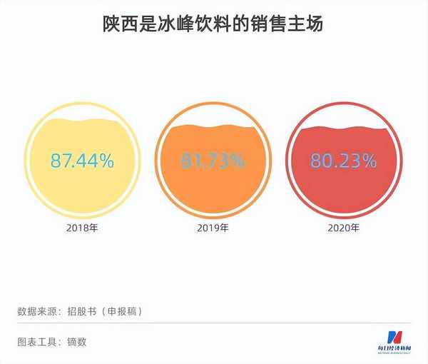 這一句話,經常被用來形容,冰峰在西安市場有多麼受歡迎,但是,大傢都忽略瞭重要的一點,2018年~2020年,冰峰飲料銷售收入來自陜西的占比分別達到瞭87.44%、81.73%和80.23%。