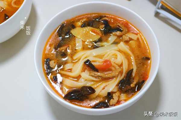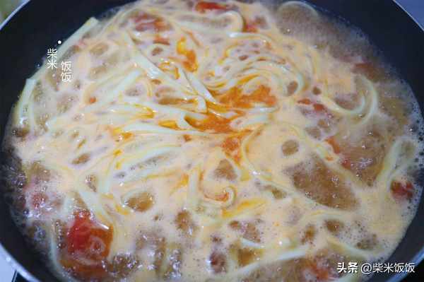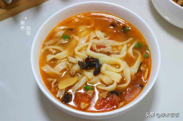 這樣做的手搟面爽滑筋道,吃起來有嚼勁。搭配鮮甜的番茄湯,香氣四溢,百吃不厭。