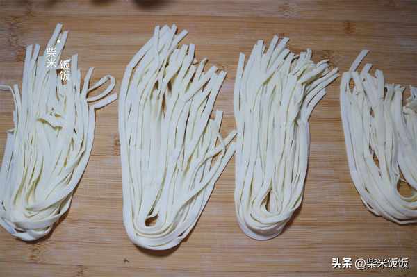 6,將面條抖散,這個手搟面硬度和筋度都特別好,放兩個小時也不會粘在一起。我這裡是200克面粉的面條,夠2~3個吃。一次可以多做一些,一份份放在冰箱冷凍,隨吃隨取。