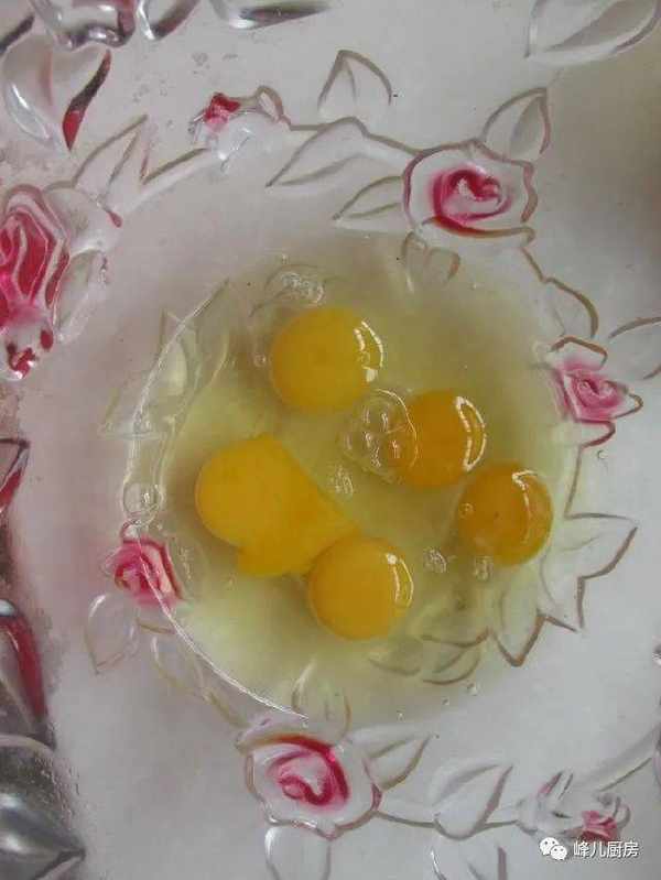 3、雞蛋一起打到容器中,今天的雞蛋有一個雙黃蛋呢。