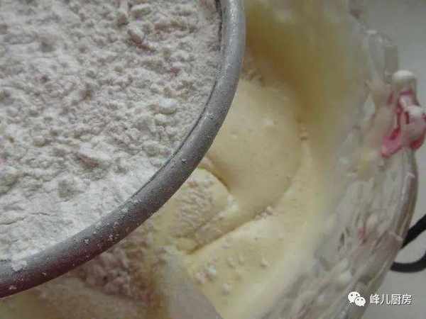 6,鹽加到面粉裡,分三次篩到蛋糊中。