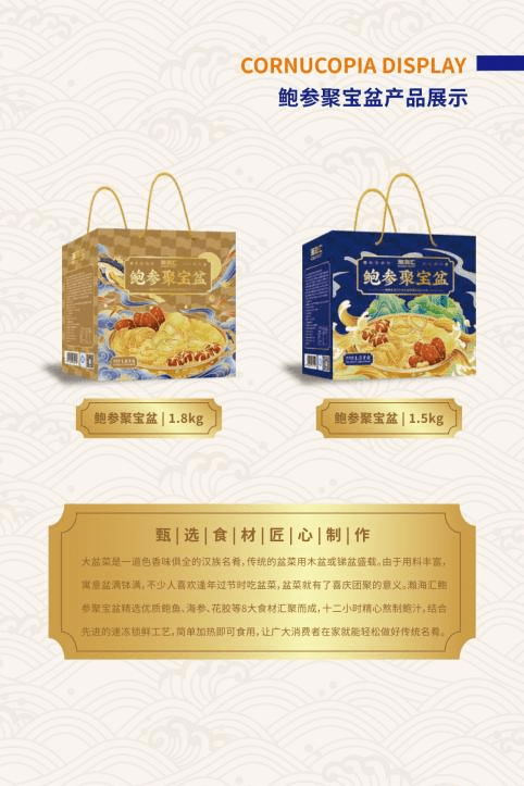 兆華鮑參聚寶盆精選優質鮑魚、海參、花膠等8大食材匯聚而成,十二小時精心熬制鮑汁,結合先進的速凍鎖鮮工藝,簡單加熱即可食用,讓廣大消費者在傢就能輕松做好菜。