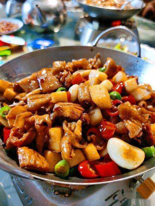 很多食客來都會點上一份,他傢分為小份和大份,小份是真的少,一下就夾完瞭,下面是吸收瞭豬腳湯汁的蘭花幹子,葷素搭配,吃起來韻味十足。