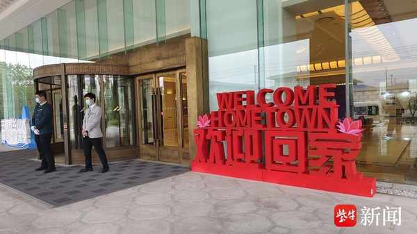 酒店門口擺放“歡迎回傢”紅色標識牌