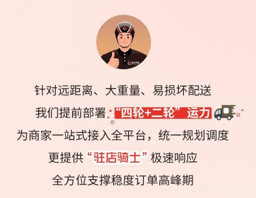 同樣,面對一單單待送出的美好心意,商傢也紛紛選擇更專業的第三方即配作為運力支撐,尤其是鮮花、蛋糕這類易損大件,專人專送、品類定制的解決方案保障瞭無損體驗,帶來瞭更高的消費者滿意度。