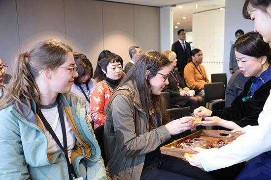 在活動上,來自甘肅省的茶藝師為觀眾展示瞭中國特色茶藝——蓋碗茶藝與玻璃杯茶藝,並邀請觀眾現場品嘗罐罐茶、三泡臺蓋碗茶等甘肅省特色茶飲。