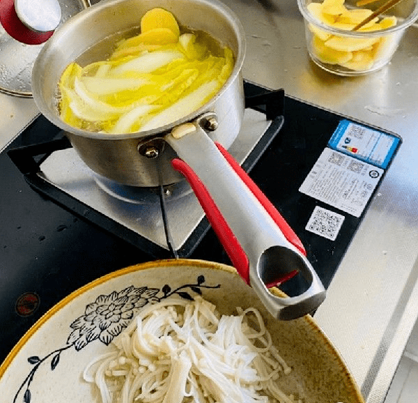 比如說,烹飪一碗“金針菇肥牛湯”,那就先把油鍋燒熱,把不去皮的整塊番茄洗幹凈直接扔進大鐵鍋,再把成坨的金針菇加進去,加上肥牛,燒水煮熱,放上香味俱全的調料,最後用勺子攪一攪,配著昨天煮剩下來的大米飯一起吃……