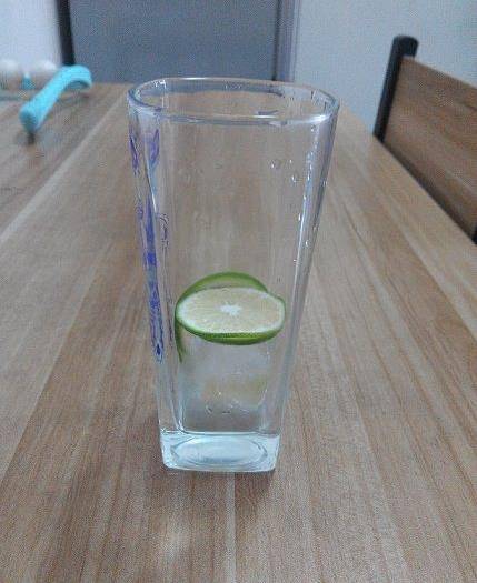 先把檸檬用鹽搓洗幹凈,切片後放進杯子,加2塊冰塊。擔心冰塊會沖淡味道,可以提前用七喜代替水,凍成冰塊使用。