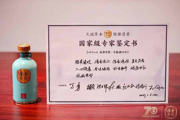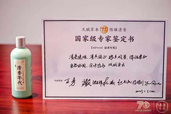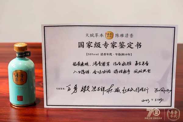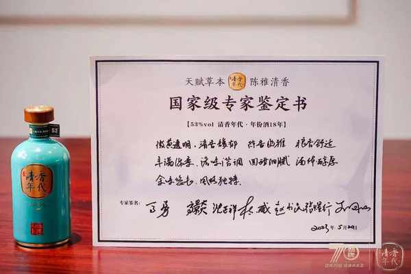 由高景炎、馬勇、杜小威、沈正祥、張煜行、趙書民、王鳳仙組成的專傢團在5月20日對清香年代系列產品進行瞭觀色、聞香、品鑒、回味後,從口感和品質上高度肯定瞭清香年代的產品品質。其中,53度清香年代·18年得到瞭專傢團“微黃透明,清香馥鬱,陳香幽雅,糧香舒適,豐滿綿柔,諸味協調,回甜細膩,酒體醇厚,餘味悠長,風格獨特”的權威鑒定評語。權威的品質背書也映射出清香年代對品質的極致打磨和勁牌70年的品質自信。