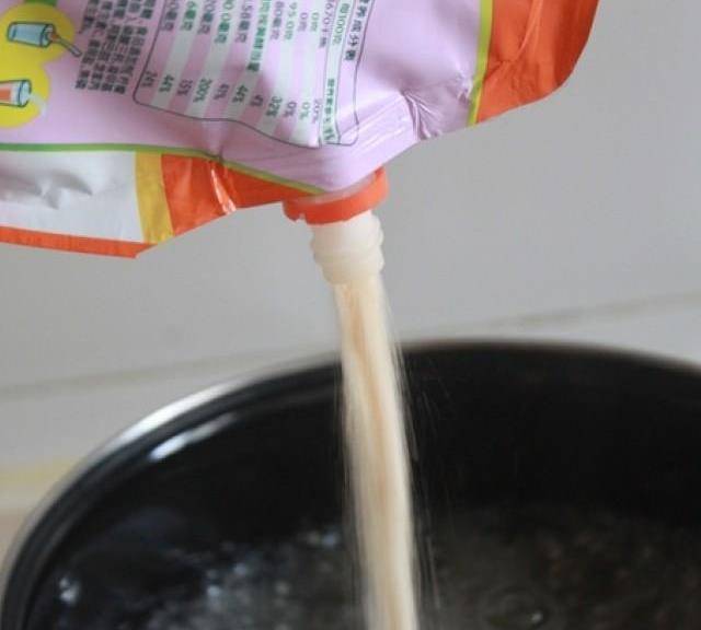 第2步、燒開水。西米用清水沖洗一遍,倒入開水中,邊倒邊攪拌,防止粘鍋底,先煮15分鐘,過程中要攪拌;