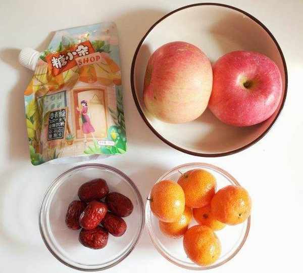 原料:蘋果、砂糖橘、紅棗、清水、鹽、白糖。